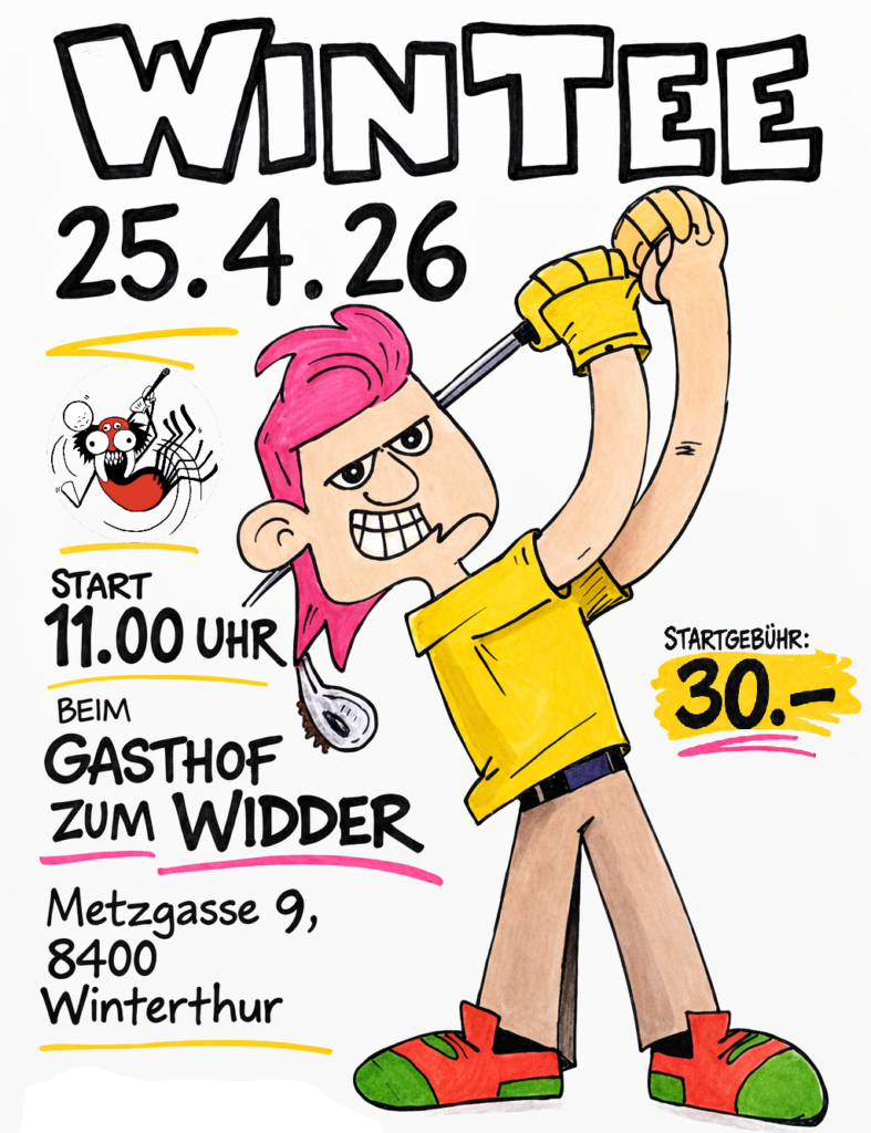Auch dieses Jahr wird das WinTee von den Backspinners veranstaltet. Ob Du Profi bist, oder noch nie einen Golfschläger in der Hand hattest, spielt bei unserem Turnier keine Rolle, denn in erster Linie geht es um den Spass. Alle sind willkommen und falls Du kein eigenes Equipment hast, darfst Du uns dies gerne bei der Anmeldung schreiben und wir organisieren Dir alles was nötig ist um mitzuspielen.